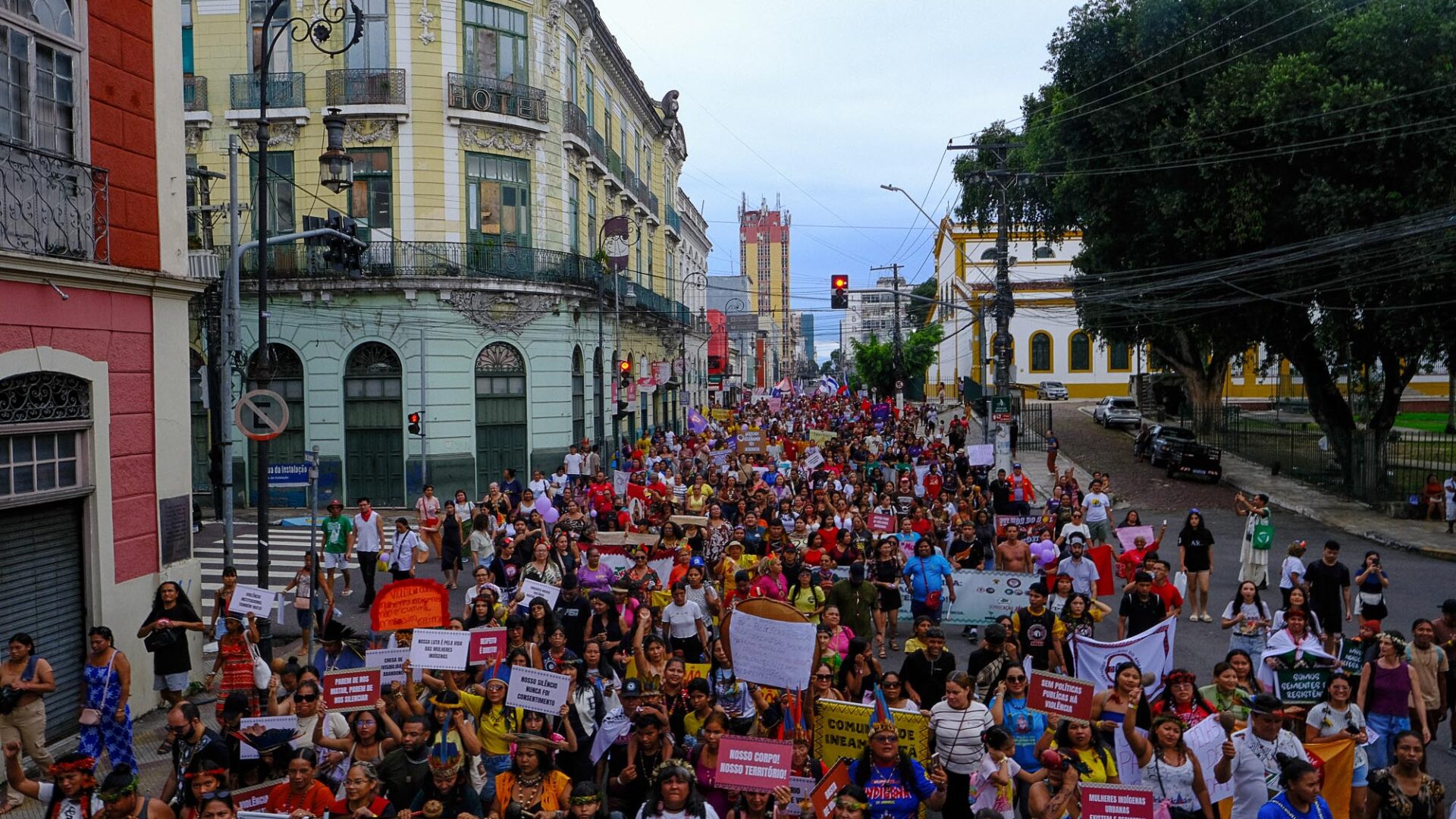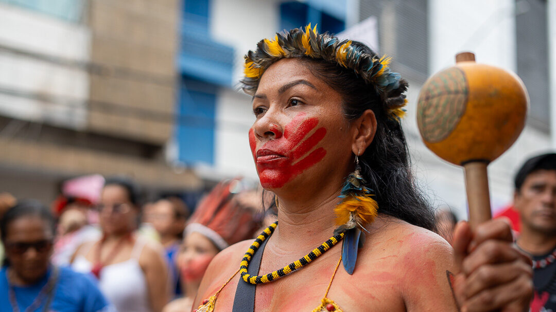 Mulheres indígenas, negras e ribeirinhas tomaram as ruas de Manaus no 8 de março para denunciar o feminicídio e as violências invisibilizadas na Amazônia — onde a taxa de mortes é 69% maior que a média nacional