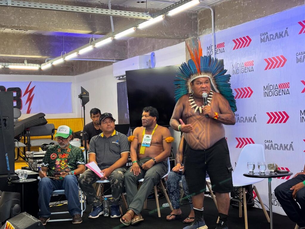 8º Grito Ancestral, indígenas durante manifestação no rio Tapajós contra a hidrovia e a Ferrogrão, em novembro de 2025 (Foto Reprodução redes sociais @midiaindigena).
