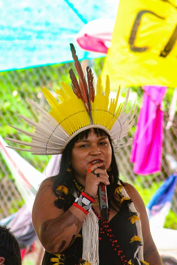 “Usina hidrelétrica do rio Madeira, usina hidrelétrica do Belo Monte, usina hidrelétrica no rio Teles Pires. Quantos rios tem que morrer? Quanta floresta precisa morrer? Quantos povos precisam morrer para dar espaço para essas multinacionais que nem conhecem o espiritual, que nem conhecem pássaro, remédio, não conhecem a cultura, não conhecem nada?” - Alessandra Munduruku