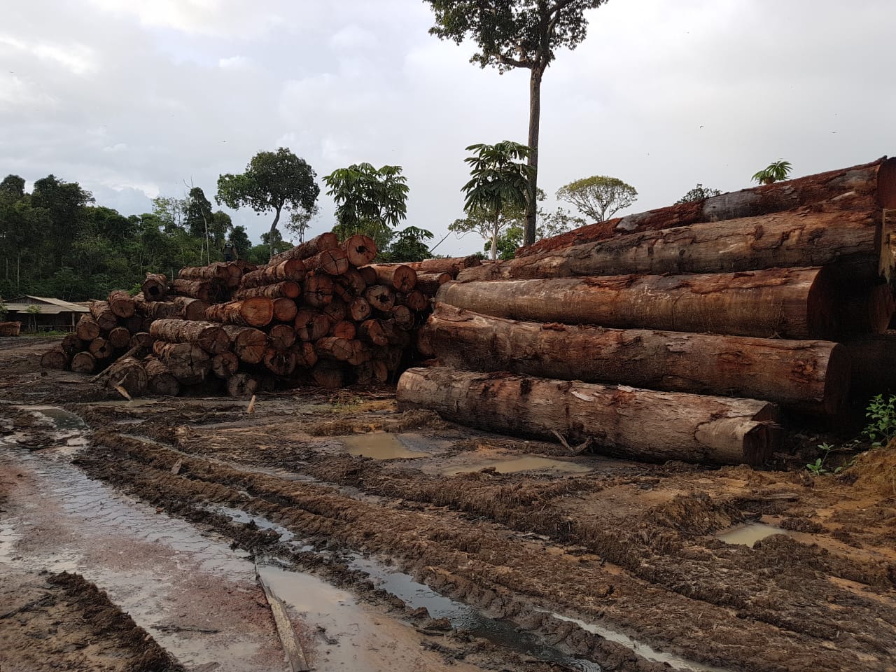 Rastro de caminhões que furtam madeira na TI Pirititi em 26 de maio de 2018