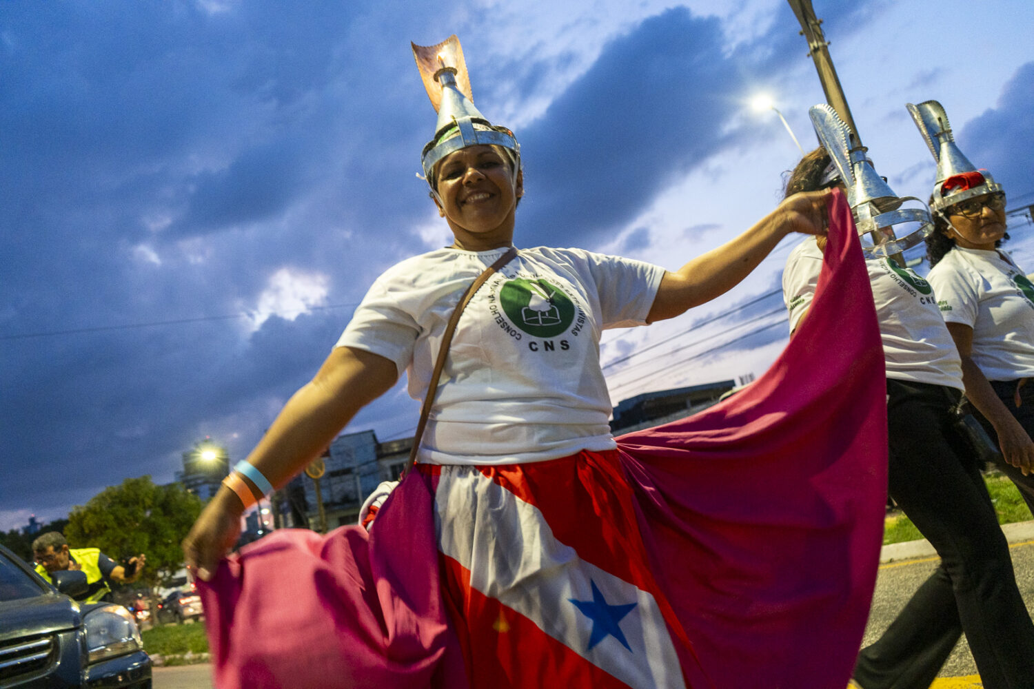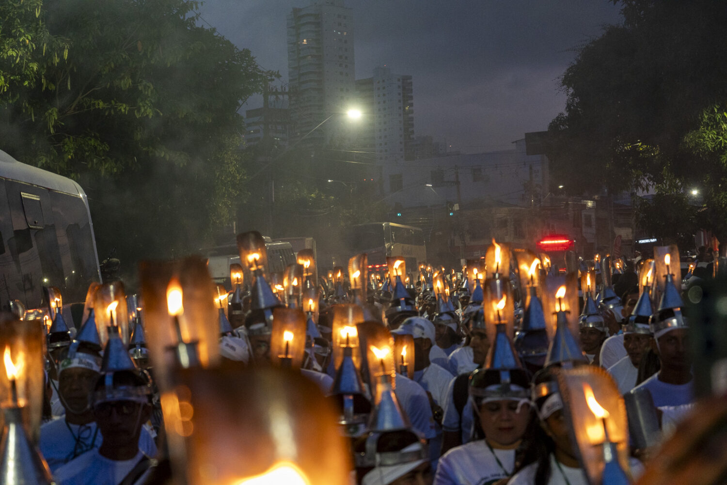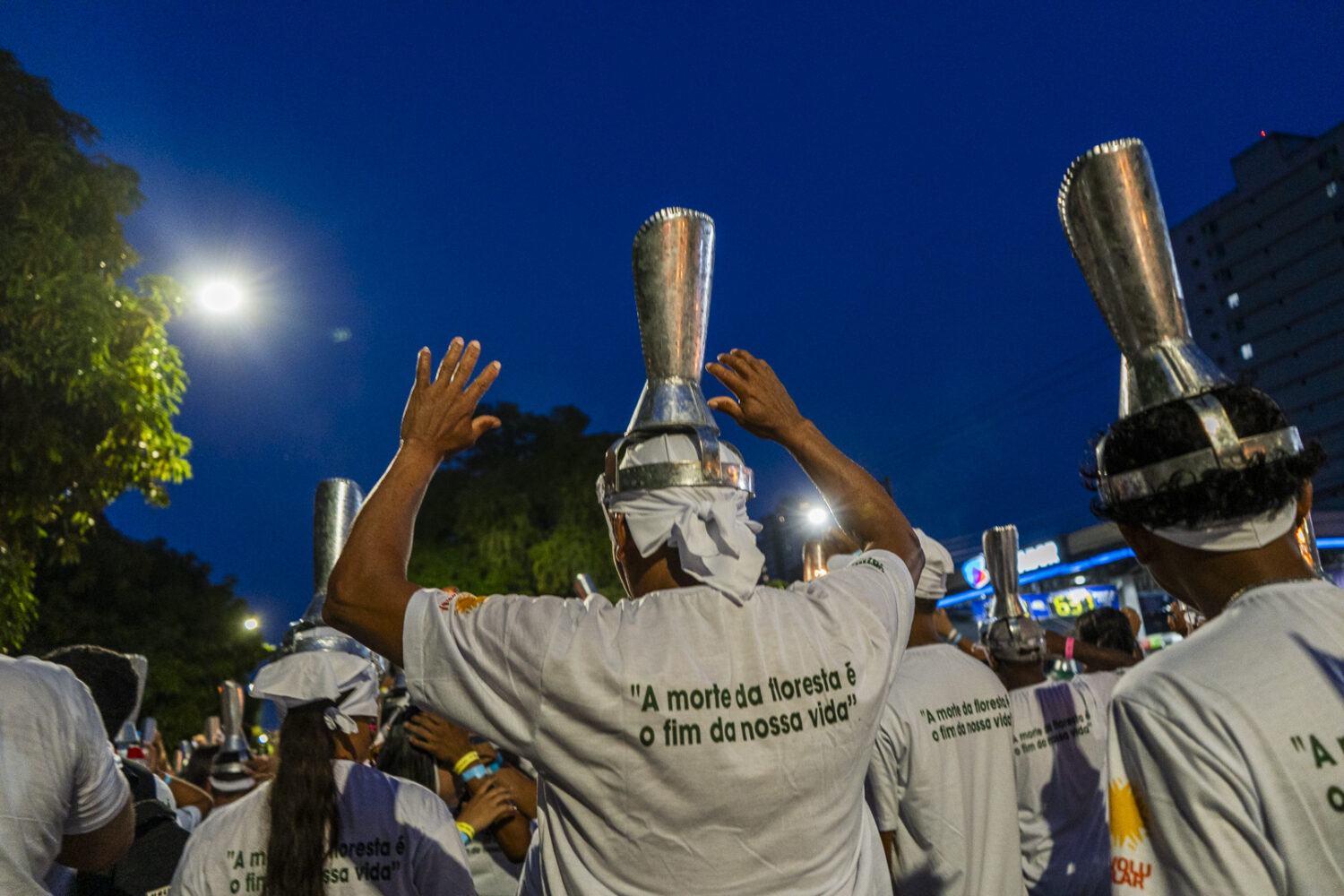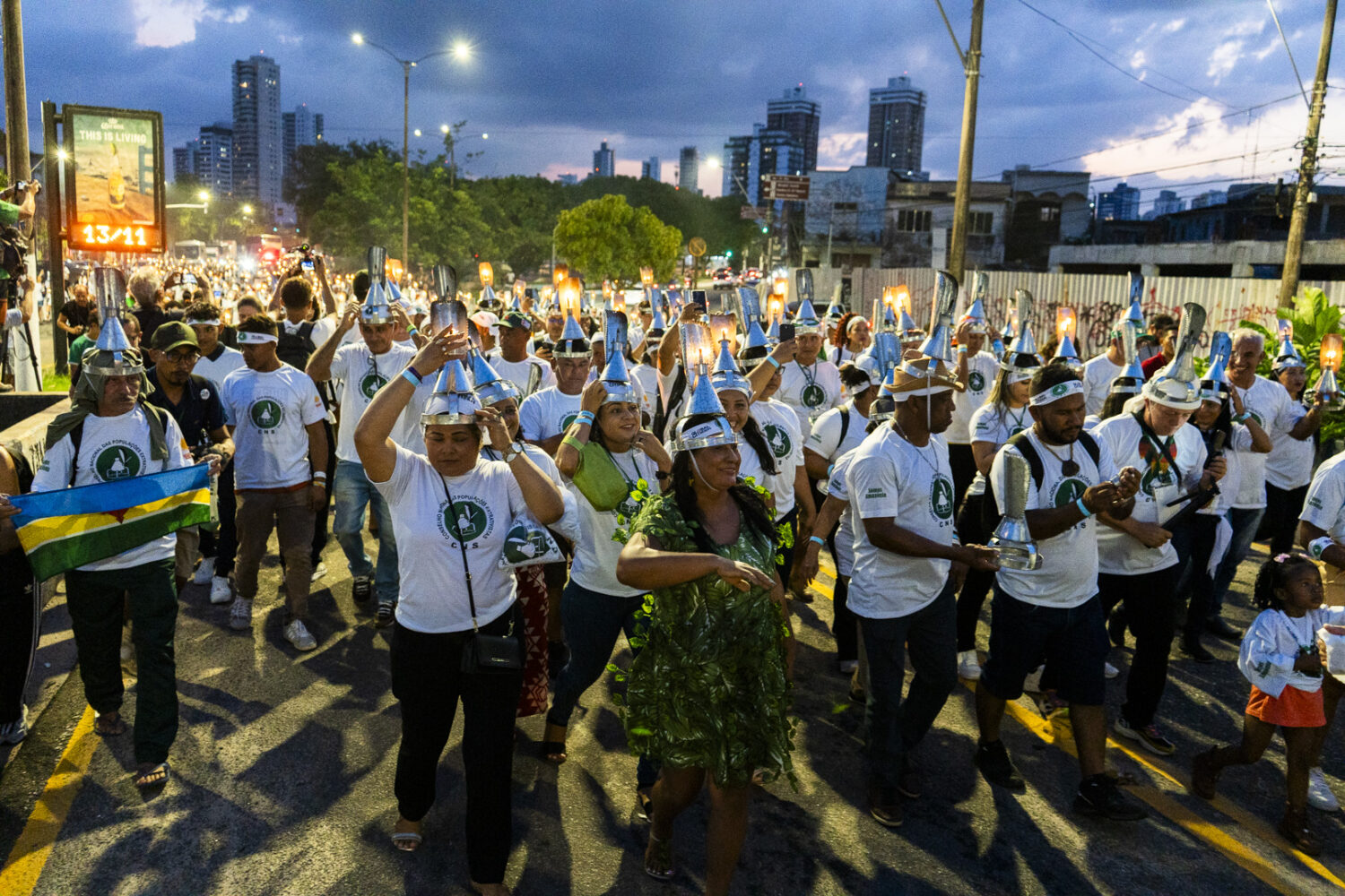 Poranganço pelas ruas de Belém. Mais de mil porangas que iluminam e simbolizam a força e a luta dos extrativistas ocuparam a cidade. (Foto: Juliana Pesqueira/Amazônia Real/2025).