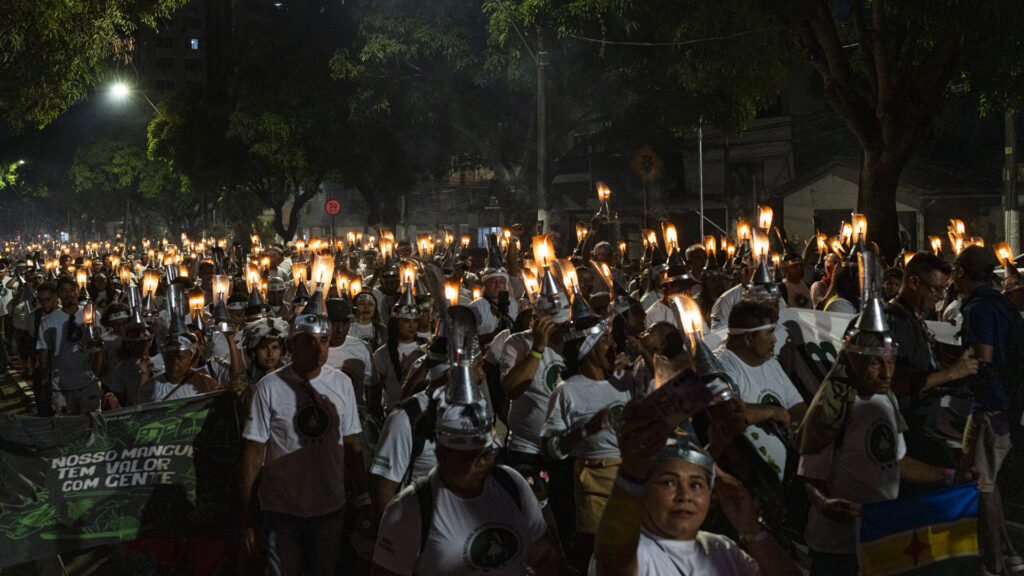 Extrativistas de todo o Brasil marcharam com mil porongas acesas em Belém para marcar os 40 anos do Conselho Nacional das Populações Extrativistas (CNS) e cobrar do governo reconhecimento e proteção de seus territórios.