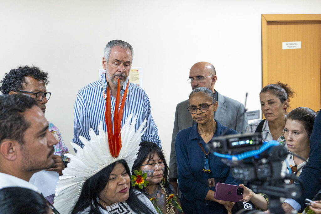 ● “Olha aí, o próprio presidente assinou o Decreto 12600, que vai privatizar o rio Tapajós, o Madeira e o Tocantins”. Alessandra Munduruku